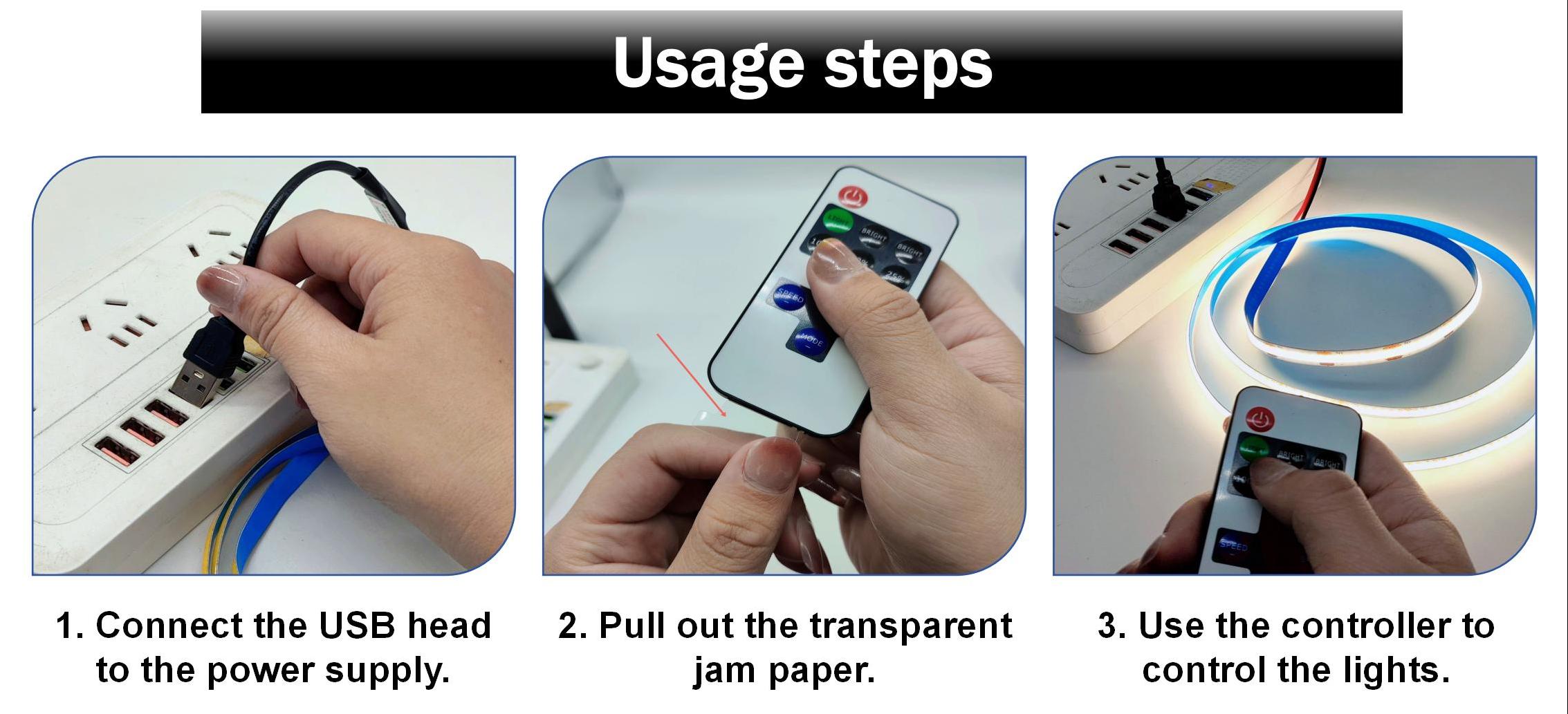 1. Lekki pasek jest łatwy do zainstalowania. Jego5 V niskie napięciefunkcja i USBInterfejs ułatwia łączenie się z komputerem, mobilnym zasilaniem lub gniazdem USB.