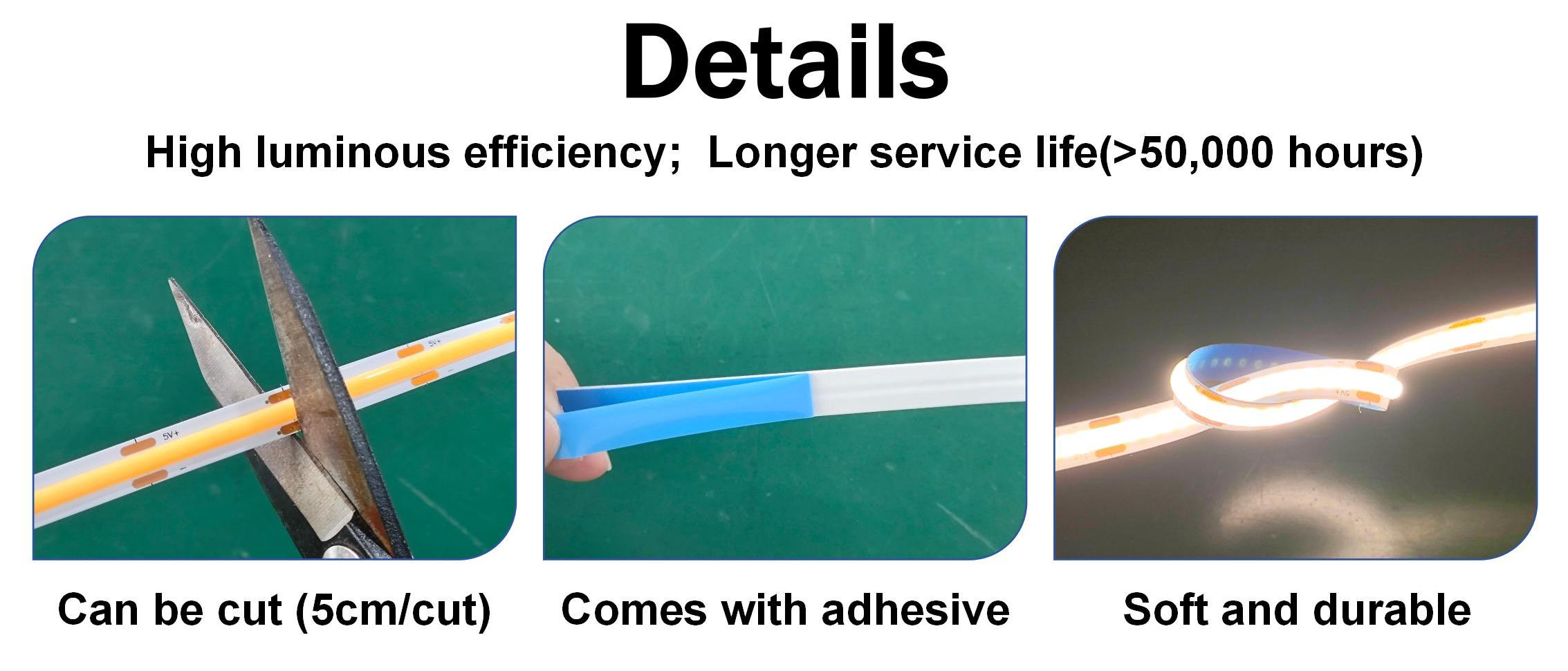 2. tymoże swobodnie wycinaćdługość światła według twoich potrzeb i używaj jego wysokiej jakościklej do trzymania sięna różnych suchych i czystych powierzchniach, takich jakŚciany telewizyjne, tła nocna, szafy na książki w dekoracji domu lub komercyjne okna i liczniki wyświetlacze. Czekać.